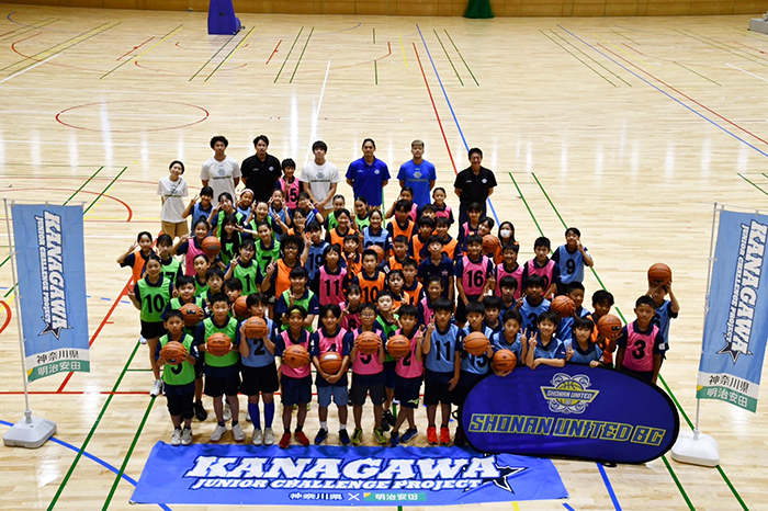 8月9日(土)にアサンテ スポーツパーク(県立スポーツセンター)にて「かながわジュニアチャレンジプロジェクト」が開催され、湘南ユナイテッドBCから鈴木友貴HC、中野広大選手、内田旦人選手、加藤陸選手、髙木慎哉選手が参加いたしました。