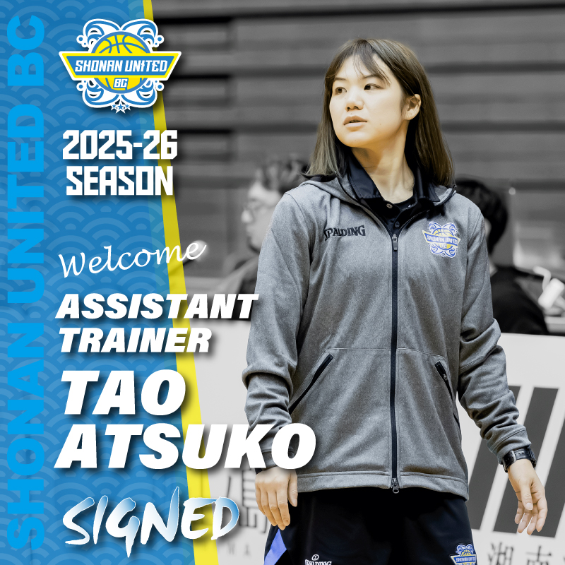 この度、湘南ユナイテッドBCでは、田尾温子 氏との2025-26シーズンのアシスタントトレーナー契約(新規)が合意に至りましたのでお知らせいたします。