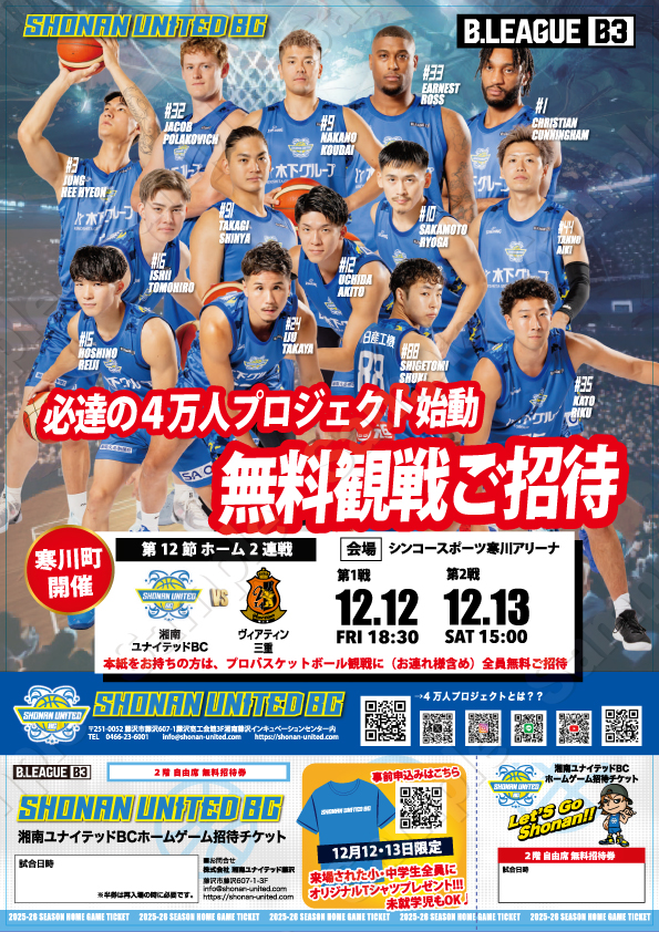 日頃より湘南ユナイテッドBCへのご声援を頂きまして、誠にありがとうございます。