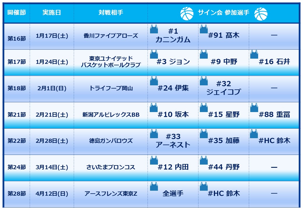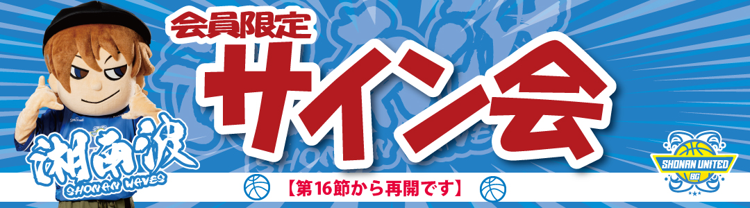 感染症拡大防止の観点から開催を見合わせておりました【湘南波会員限定サイン会】につきまして、状況の改善を踏まえ、1月17日(土)香川ファイブアローズ戦より再開させていただく運びとなりました。