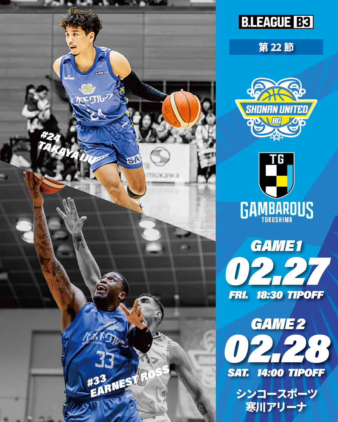 対戦カード:【湘南ユナイテッドBC vs 徳島ガンバロウズ】