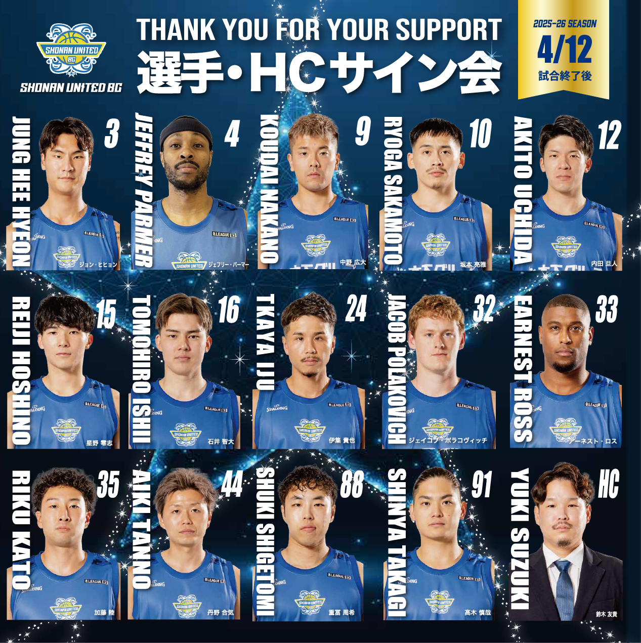 日頃より湘南ユナイテッドBCへのご支援・ご声援を頂きまして、誠にありがとうございます。